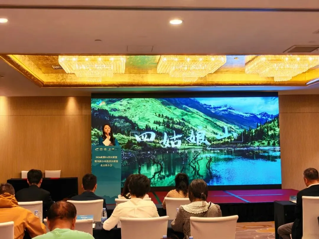 2026年4月17日,四姑娘山景区作为川西环线联盟核心成员,在北京川西环线联盟文旅推介会上精彩亮相,面向北京旅行商,全方位展示“东方圣山·户外天堂”的独特魅力,发布四条春季精品游览线路,以优质产品拓展北方客源市场,深化区域文旅联动。