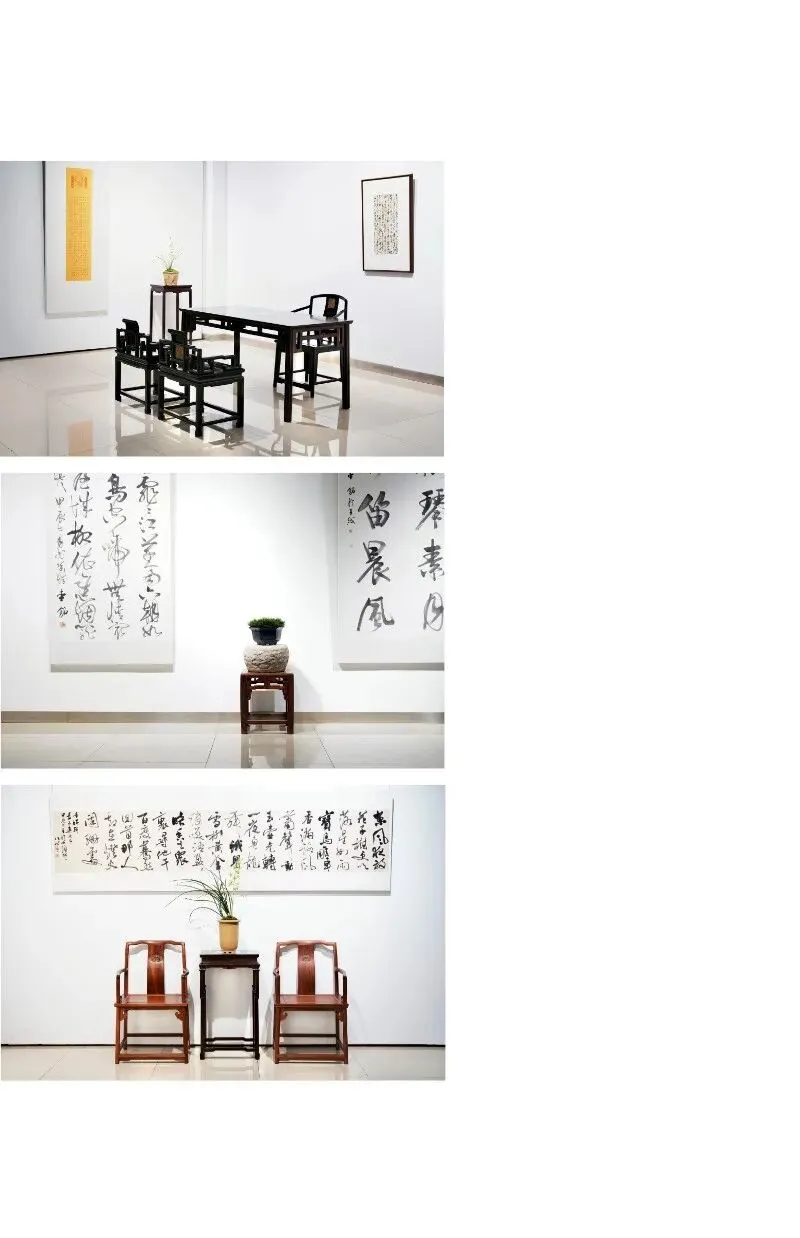 明清家具载道,素简凝练,线条温润,配之文房清供,幽兰盆景,汉服茶席,古琴香道,茅山陶瓷,营造清雅绝尘的文人空间,于方寸展厅间,演绎名贤大儒生活雅范,彰显中式君子品位。