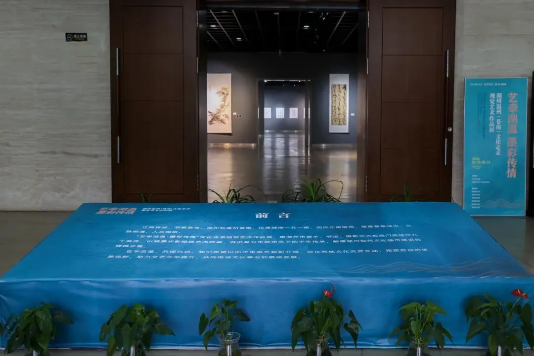 “艺牵湖温·墨彩传情”文化走亲视觉艺术作品展,集湖州市美术、书法、摄影三大视觉门类佳作九十余件,以翰墨光影搭建艺术桥梁,诉说吴兴毛颖甲天下的千年传承,触摸湖州现代文化强市建设的铿锵步履。