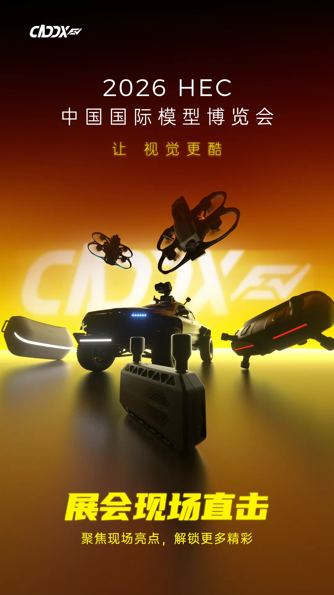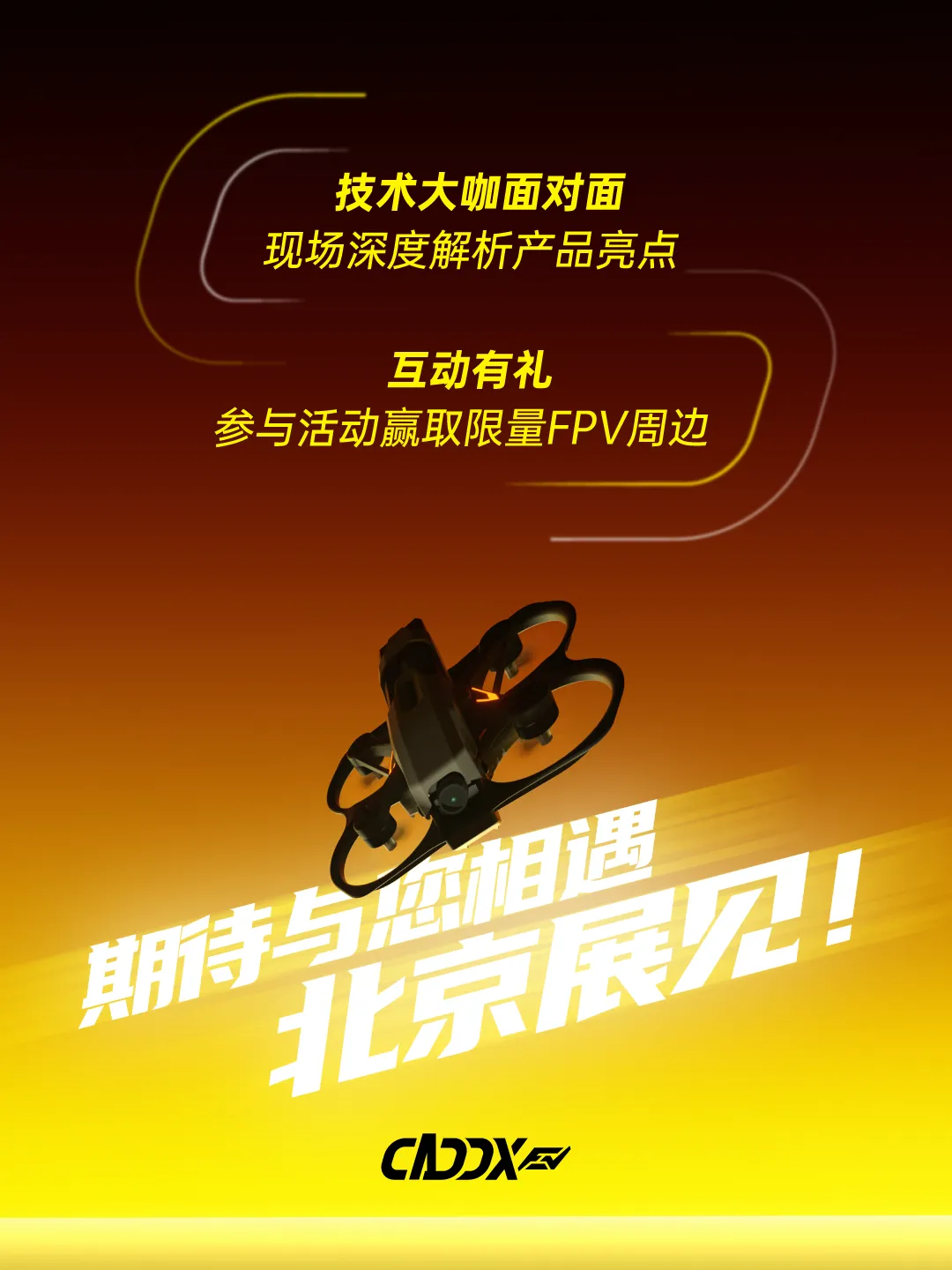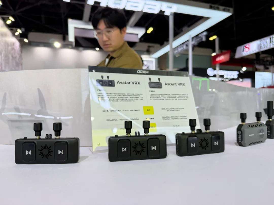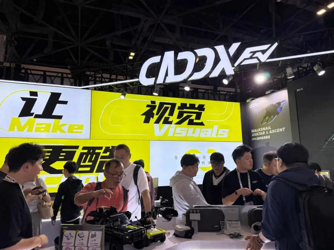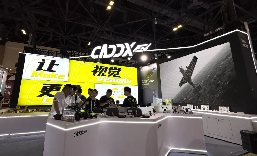 CADDX卡德克斯以更具未来感的展陈和更强互动性的体验内容亮相北京展览馆11号馆 aE20展位,围绕FPV数字高清系统、FPV无人机系列、影像系统及沉浸式互动区域,带来一场速度感、科技感与临场感交织的第一视角盛宴。开展首日,展区便吸引大量观众驻足体验,成为现场关注度极高的热门区域之一。