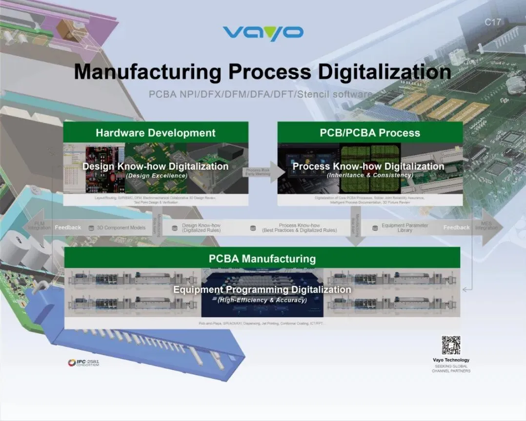 本次望友受邀参展,现场将携行业首个机电协同3D DFA方案、全球首个3D持续进化型 DFM方案以及Stencil数字化钢网软件等热门产品亮相现场,聚焦展示望友集设计经验数字化、工艺经验数字化、设备编程数字化等为一体的数字化创新方案。