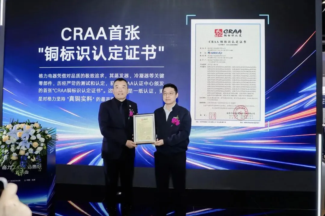 格力-全国首张CRAA“铜标识认定证书”
