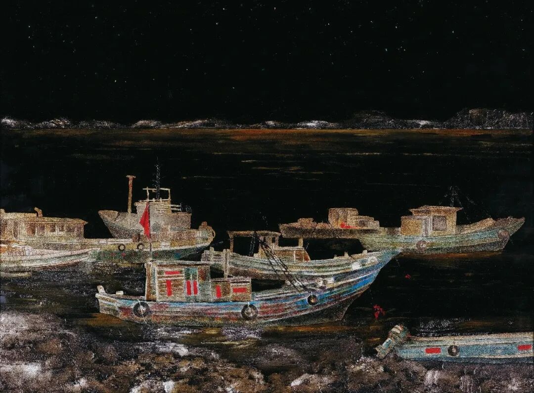 李顺庆《渔港夜色》漆画60x80cm安徽