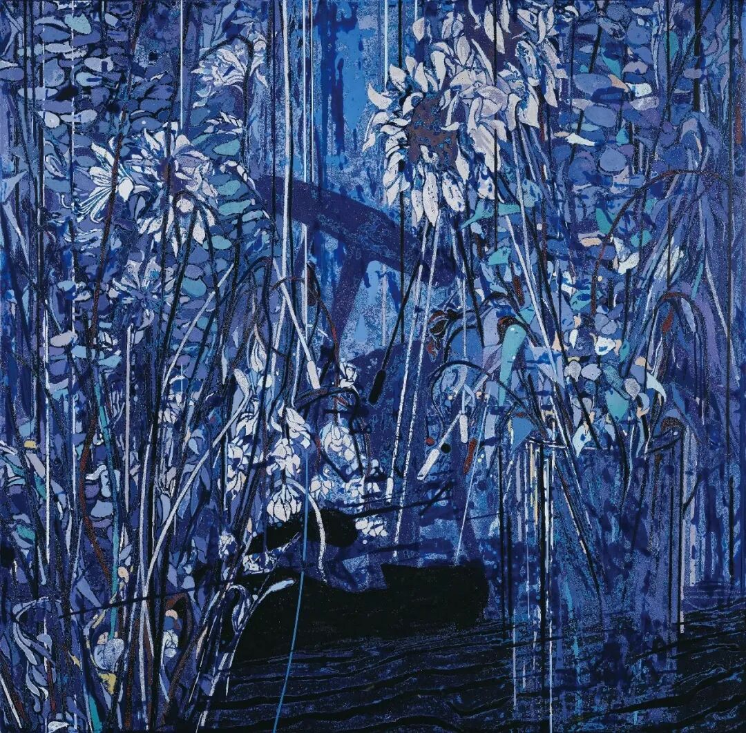 李子豪《风帘·夏沐》漆画60x60cm 安徽