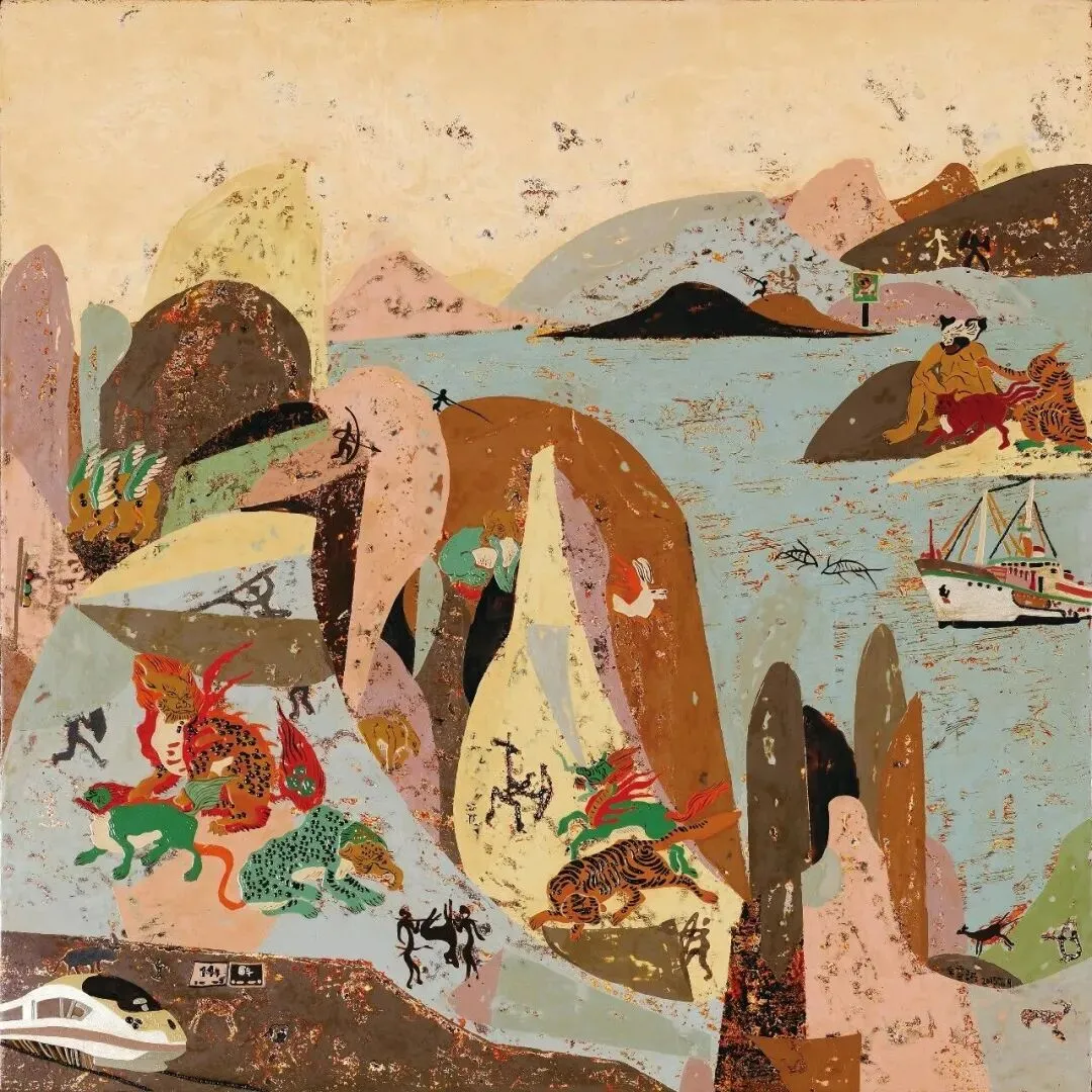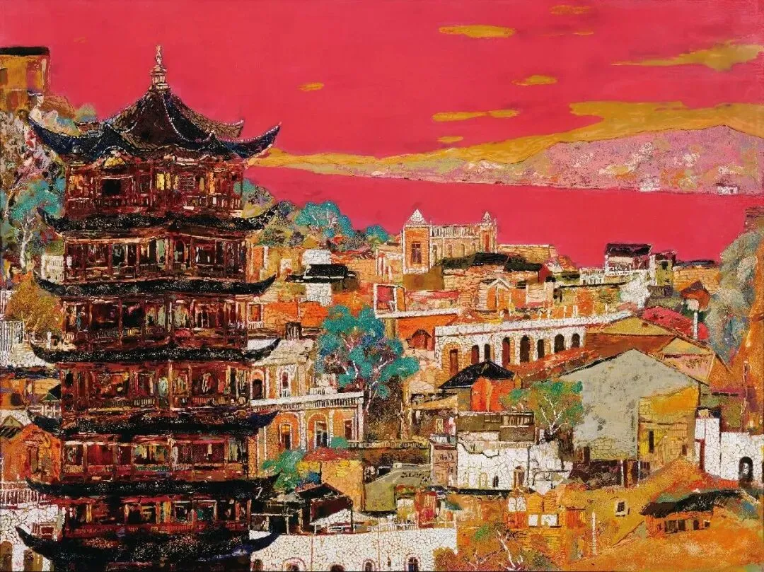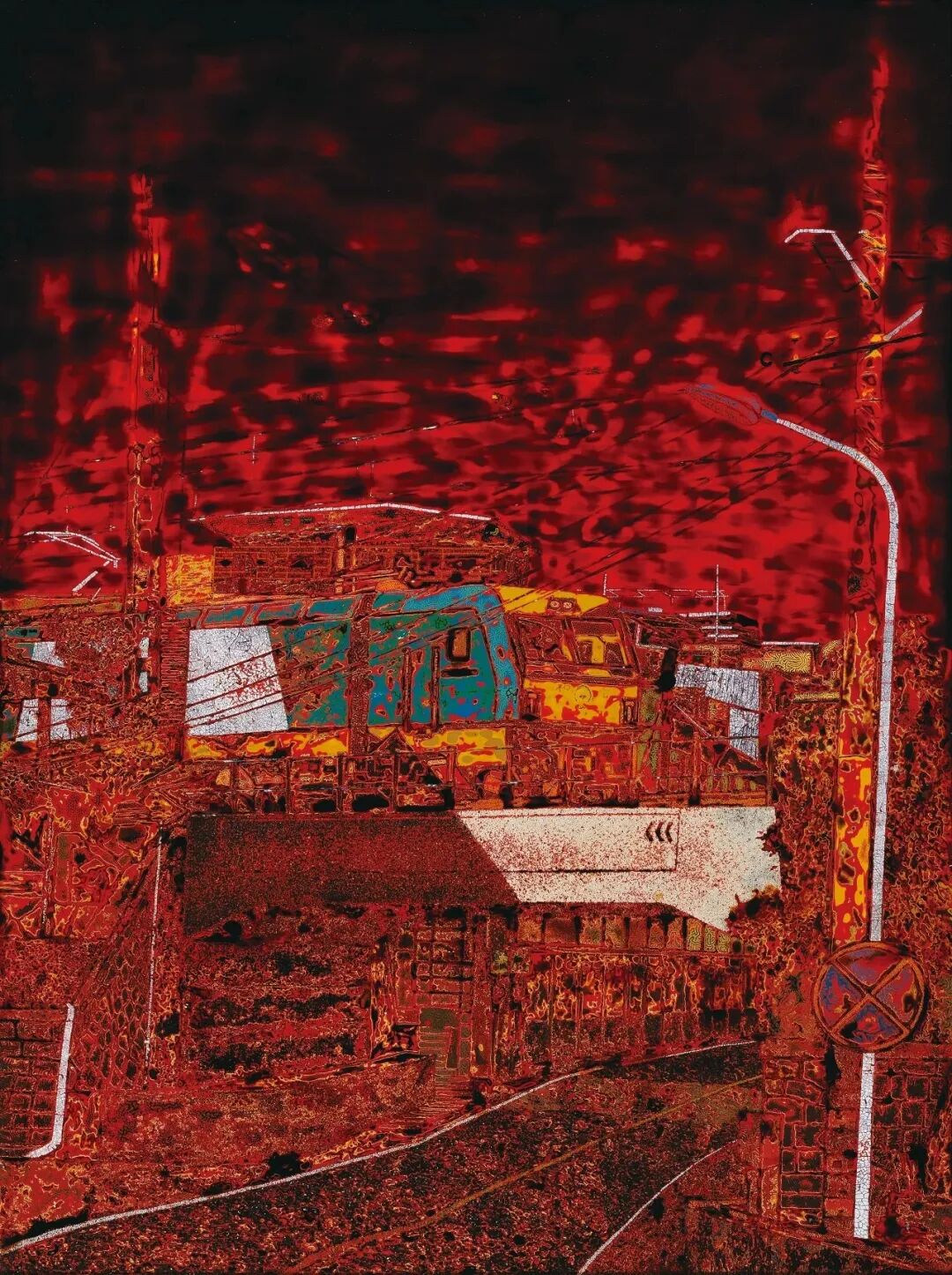 练威鹏《绯色烟峦》漆画 60x80cm 广东