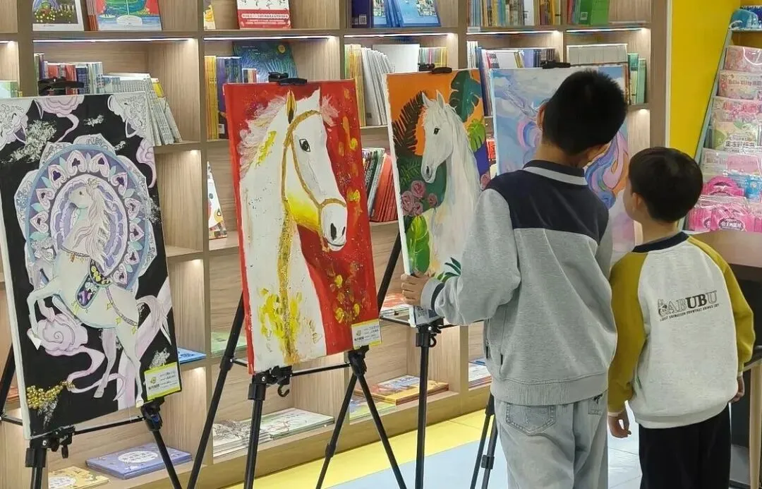这里有稚嫩却灵动的线条,有绚烂而纯粹的色彩,有孩子们对世界的好奇与热爱,有对生活的观察与感悟,更有对美好未来的憧憬与向往。作品风格多样、题材丰富,或临摹经典,或大胆创作,既展现了孩子们的艺术天赋,也传递着“打开一扇阅读的门,开启一生爱的旅程”的美育理念,让每一位观展者都能被这份纯粹的童心与创意治愈。? 温馨提示:可携带孩子一同观展,在书香与艺术中,感受传统文化的魅力,守护少儿的创意初心;观展期间请爱护作品,文明观展。
