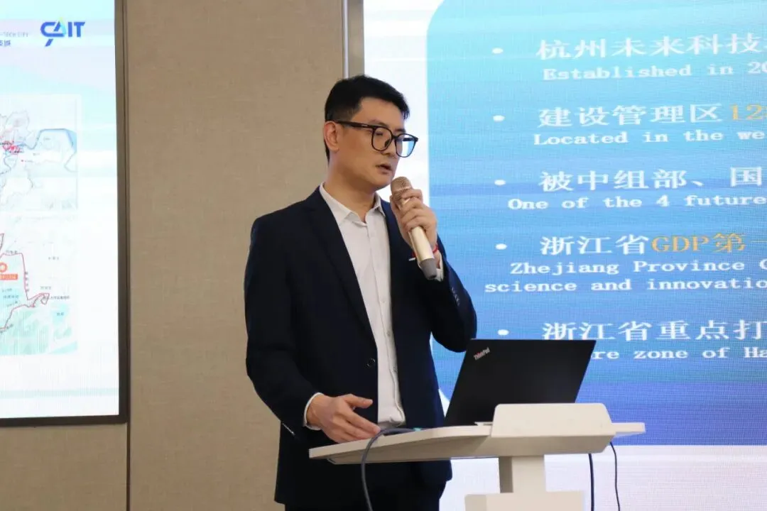 核心推介环节,中国(杭州)人工智能小镇招商经理张帅围绕小镇区位优势、载体空间、产业配套、服务体系等核心亮点,结合企业入驻案例进行全面推介,并针对招商政策、项目评审、科创补贴及入驻流程等企业重点关注事项,进行了深入解读。