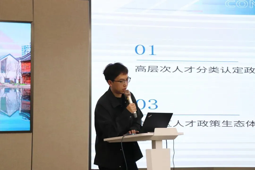 推介环节之后,特邀政策专家围绕高层次人才认定标准、余杭区人才政策生态体系进行专项解读,详细介绍了人才扶持、安居保障、创新创业激励等相关政策,为意向企业入驻提供了清晰指引。详实的内容、务实的政策,赢得了现场嘉宾的高度关注与广泛认可。互动问答环节,现场答疑解惑与有奖互动相结合,加深了嘉宾对小镇的了解。