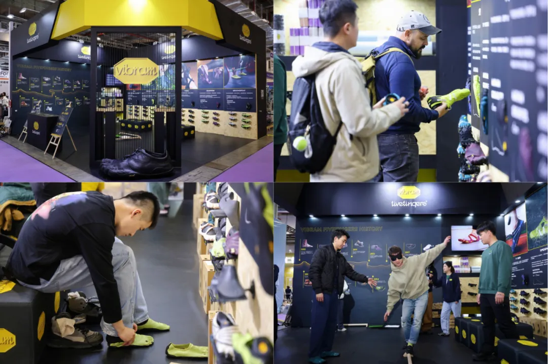 在展会现场,以沉浸式历史展区呈现从专业传奇到潮流前沿的品牌发展脉络,诠释“本真·连接”的品牌力量。而在产品体验区,集中展示了V-Soul、GRASPIFIER、GROUNDSPLAY等室内健身系列,以及依托全地形鞋底科技的户外系列产品。