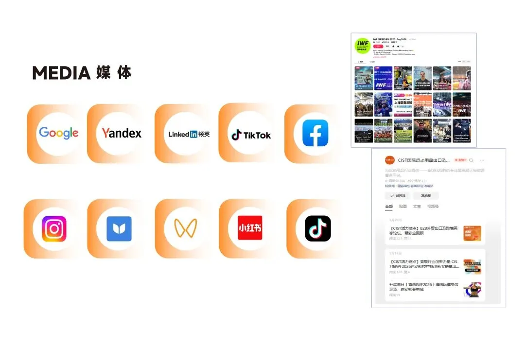 CIST与IWF全球主流社媒资源共享,将加大力度定向推广CIST参展企业新颖产品与企业实力,提供多渠道国内外社媒曝光支持,助力企业高效触达海外客商。