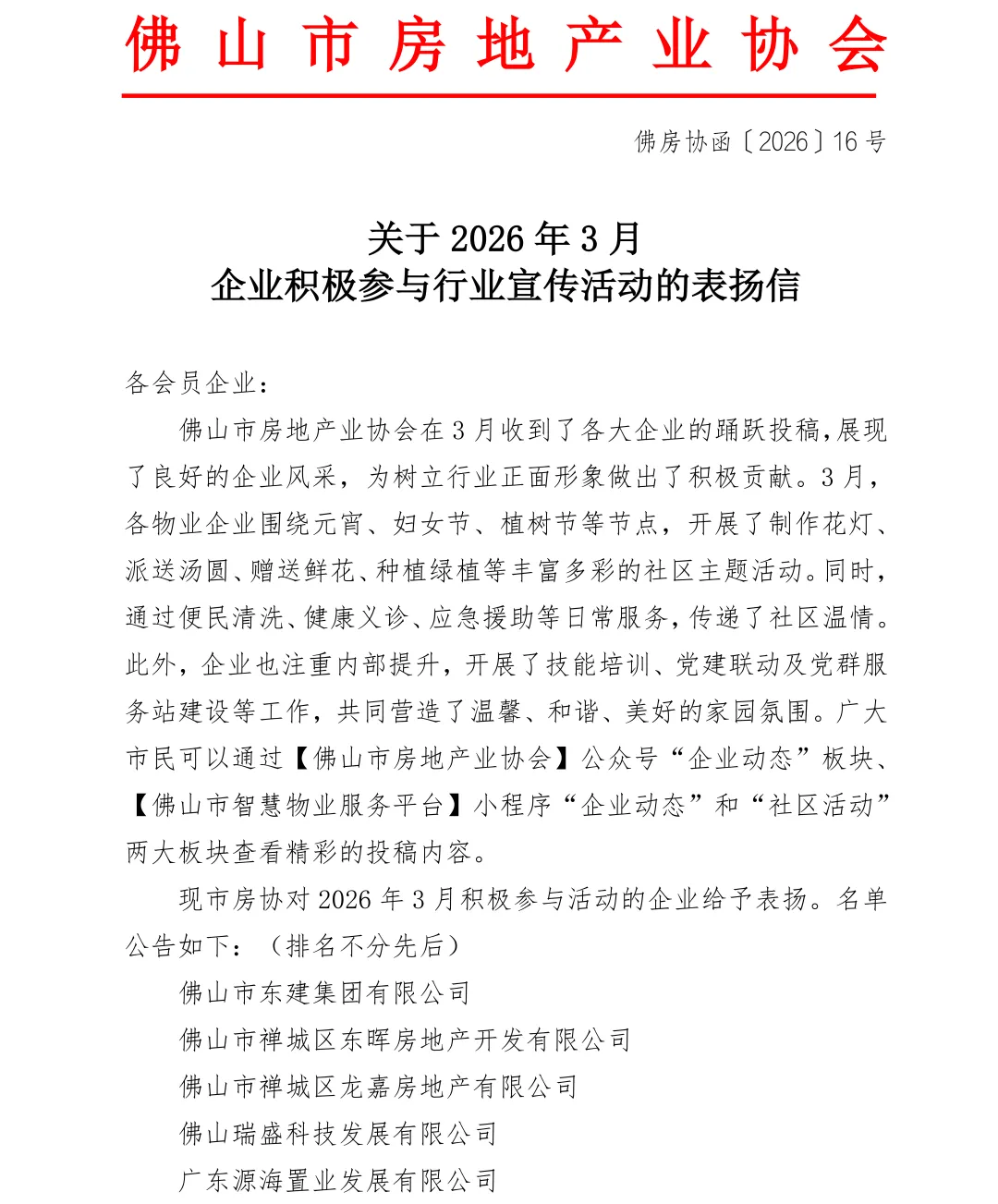【表扬信】关于2026年3月企业积极参与行业宣传活动的表扬信