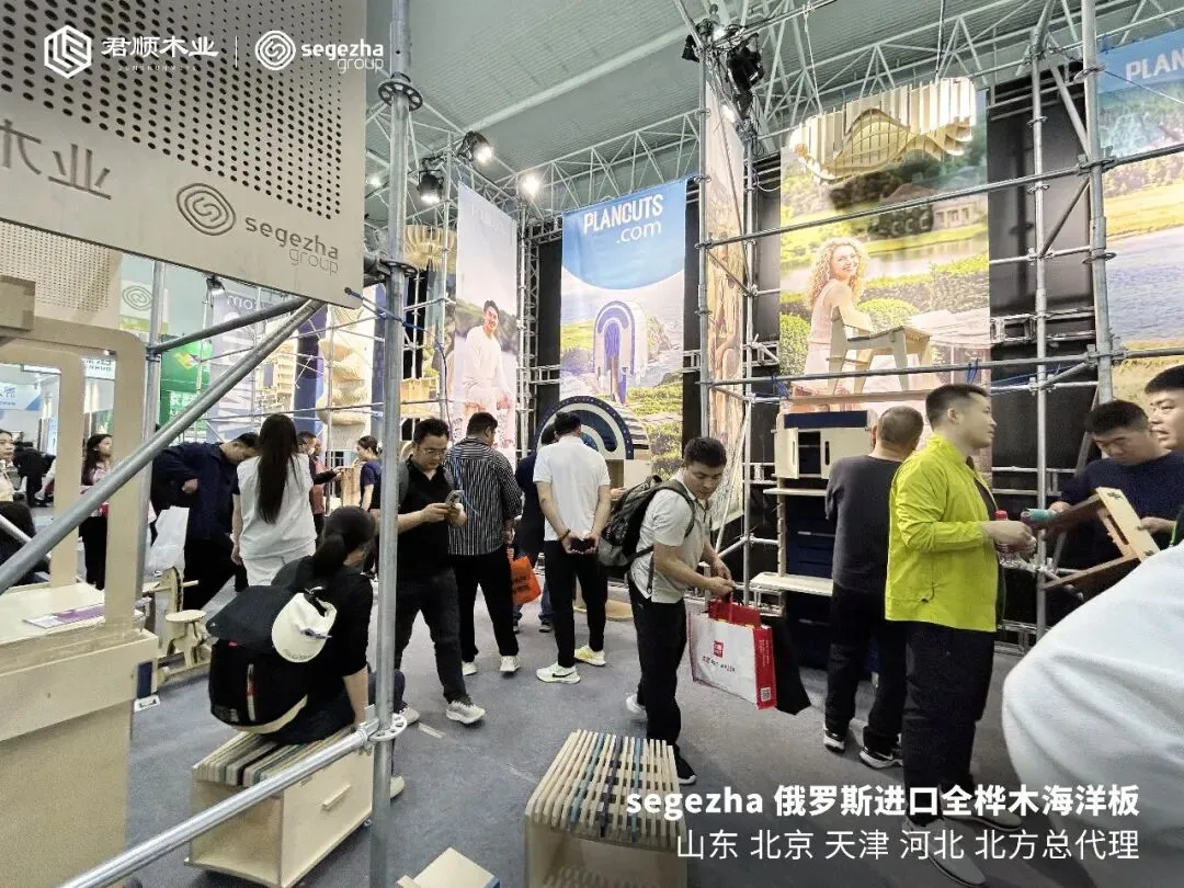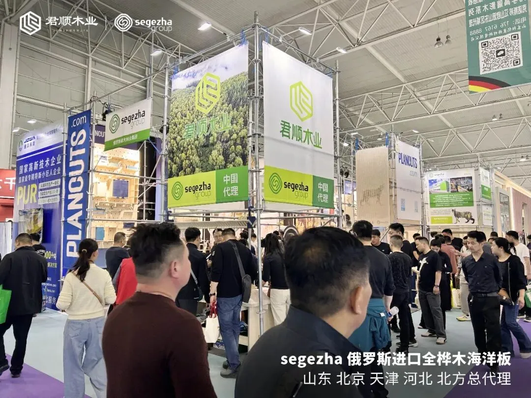 4月17日,第十届临沂全屋定制暨供应链展览会正式拉开帷幕。临沂国际会展中心一号馆内,君顺木业的展位(1T19)从一早便陆续迎来专业观众。没有花哨的表演,没有夸张的口号——展台上整齐陈列的俄罗斯进口Segezha全桦海洋板,本身就是最直接的名片。