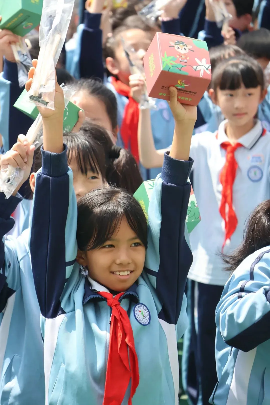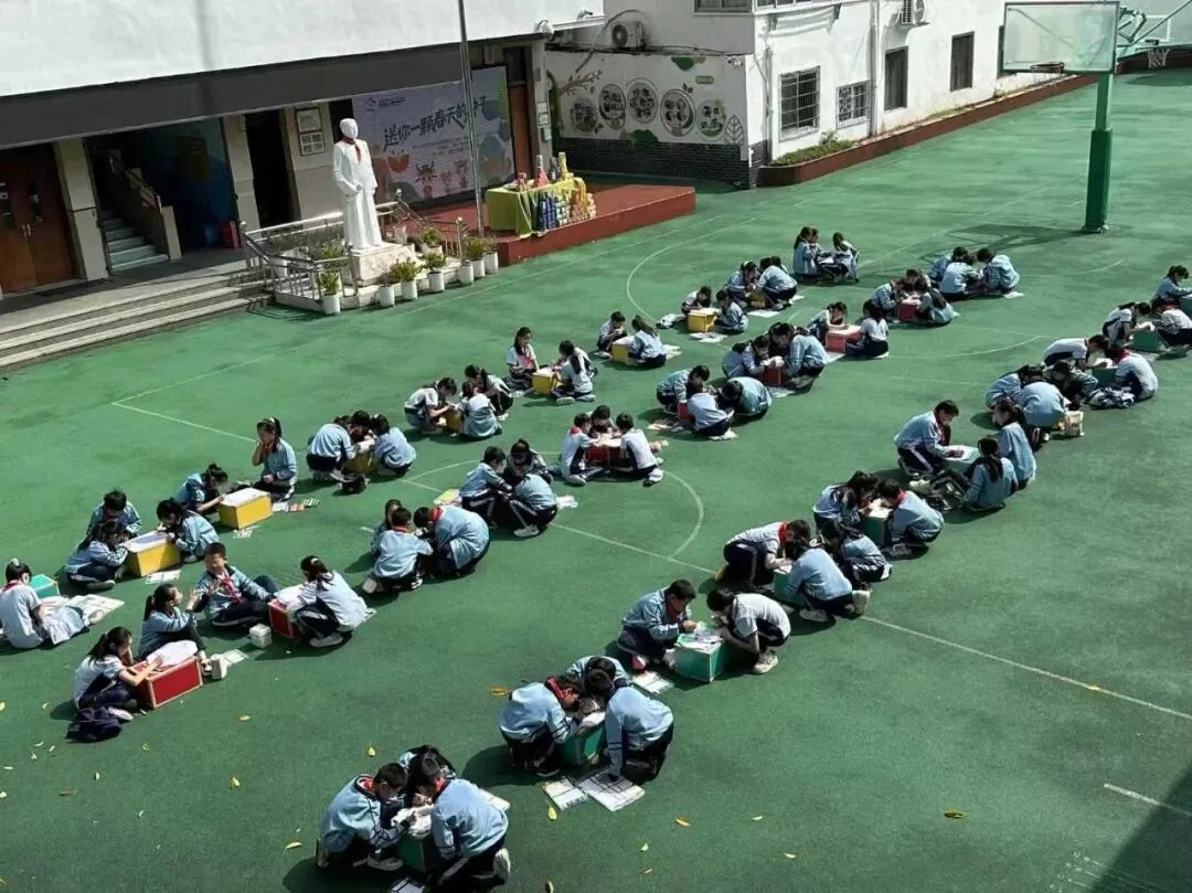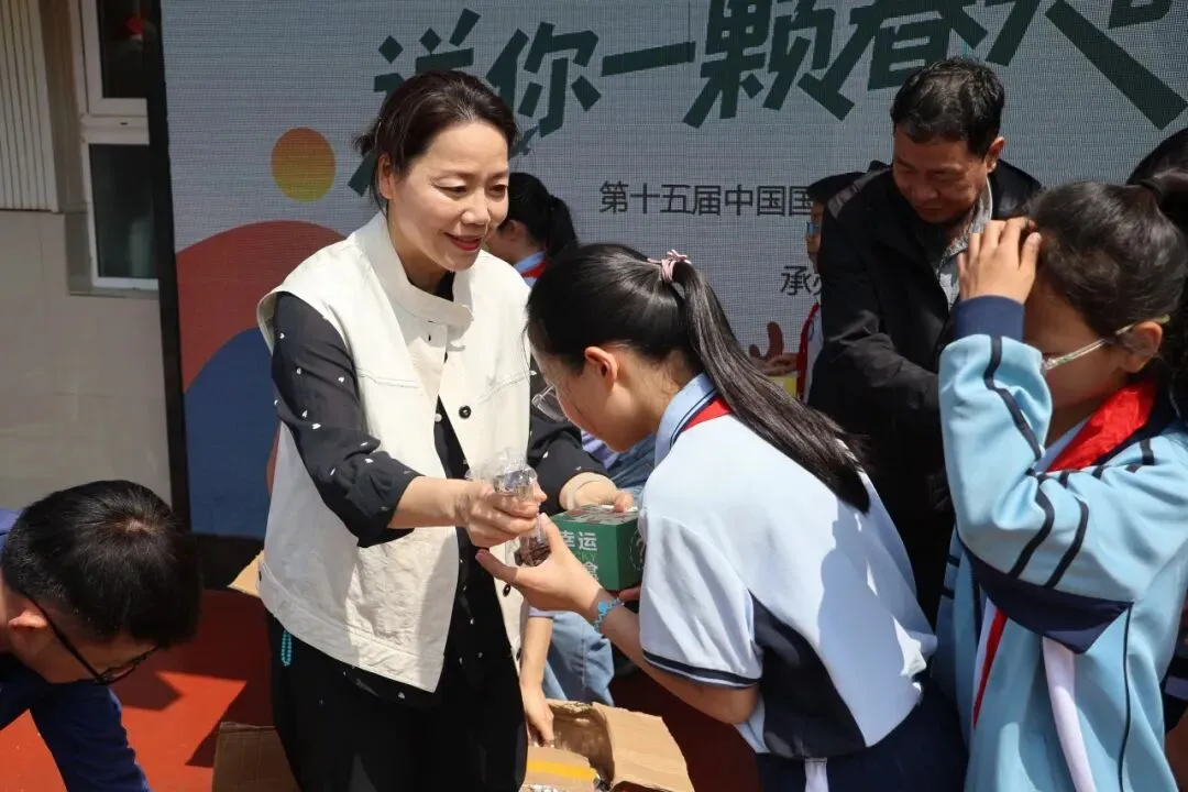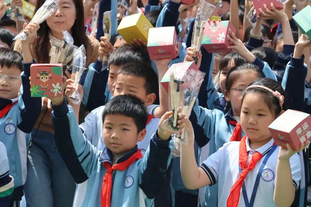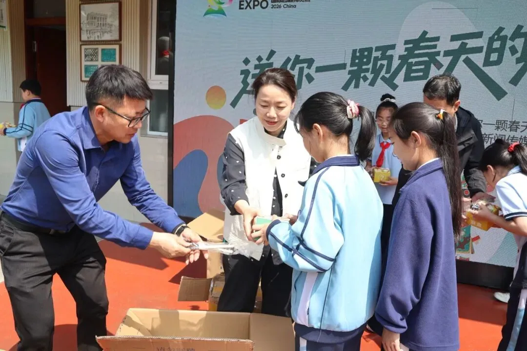 为了让环保理念走出校园,深入家庭,二至五年级的学生在操场上整齐列队,见证了一场特殊的“种子传递仪式”。工作人员与教师代表共同将园博会送来的盲盒种子分发给每位同学,每袋种子均附有详细的种植手册和园博会吉祥物贴纸。“这是春天的礼物,也是绿色的希望!”五年级学生李伊一捧着种子兴奋地说,“我要和爸爸妈妈一起种在阳台上,让绿色在家中生根发芽。”此次发放的种子均为适合家庭种植的易存活品种,旨在将环保实践延伸至家庭场景,让绿色生活理念在家庭中得以传承与发扬。