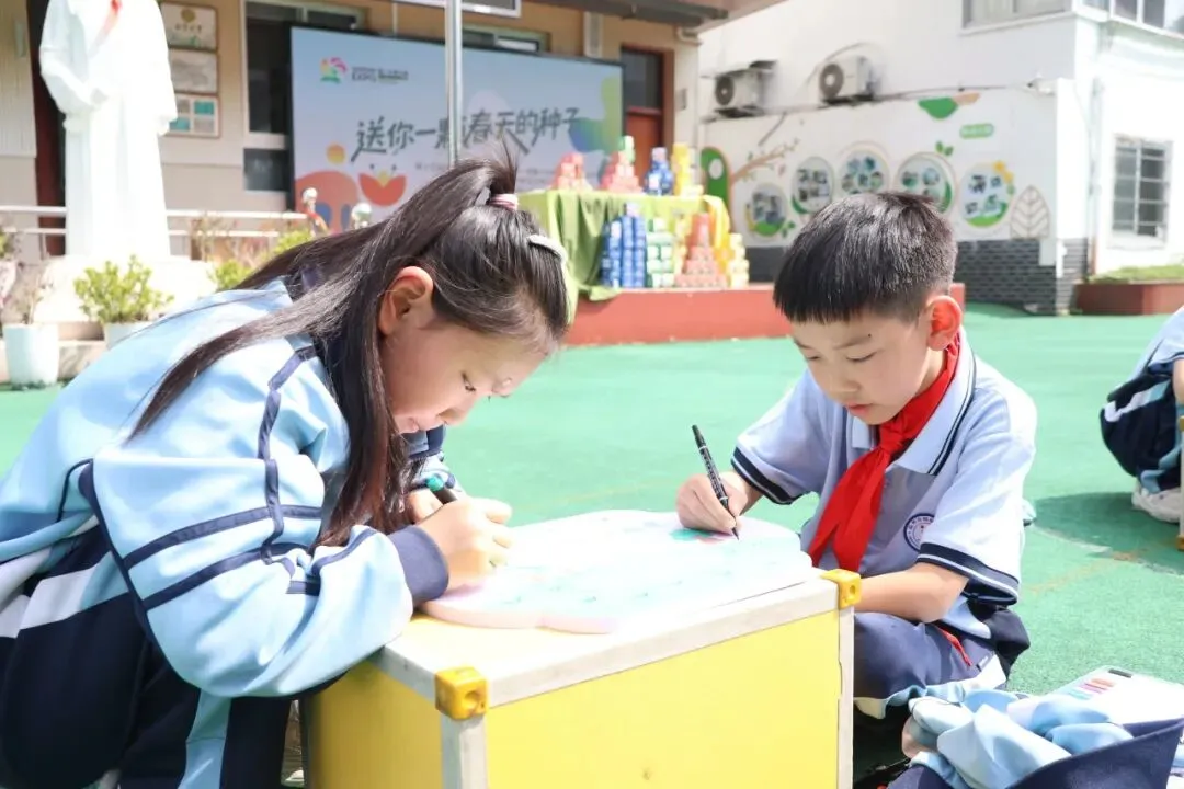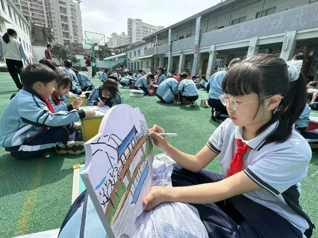 活动伊始,全校学生以班级为单位,在“有间小院”的温馨氛围中组成创意小组,围绕“园博会与生态保护”这一主题,精心绘制宣传标牌、园博园景观介绍牌。孩子们用彩笔在画布上勾勒出园博会的标志性景观,搭配“爱护花草,珍惜绿色”等环保标语,将艺术创作与生态教育巧妙结合。半个多小时的集体创作后,30余幅色彩斑斓、充满童趣的宣传牌在“有间小院”的花廊中展出,成为第一道亮丽的生态风景线,吸引了众多师生的目光。