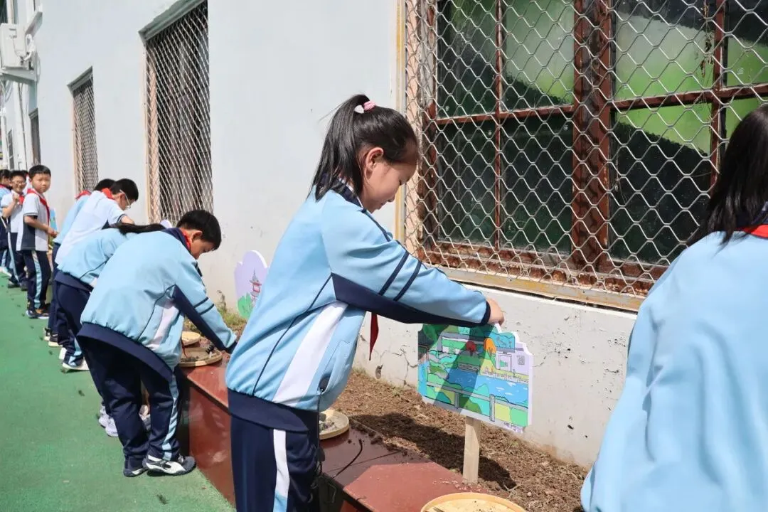 随后,播种仪式在校园花坛中隆重举行。30名学生代表在老师的悉心指导下,小心翼翼地将种子播入土壤。“要挖两指深的坑,浇水不能太多”,孩子们边操作边复述种植要领,稚嫩的脸上写满了认真与期待。各班级代表随后将绘制的宣传牌插在播种区域,形成了独具特色的“责任田”标识。学校老师们纷纷表示:“让孩子们在校园里亲手播种、养护,能更直观地理解生命成长的过程,培养他们的责任感与爱心。”