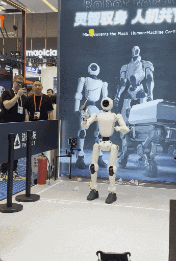 动易科技PHYBOT C2(1.35 米双足人形)全球首次在展会上与人稳定对打,它具有快速移动、视觉追踪、挥拍击球等高动态交互能力,吸引不少外商围观。该公司相关人员表示,今年2月开始批量生产,在本届广交会现场有接受来自欧美、日韩、东南亚、南美客户的咨询,下半年出口更明朗。