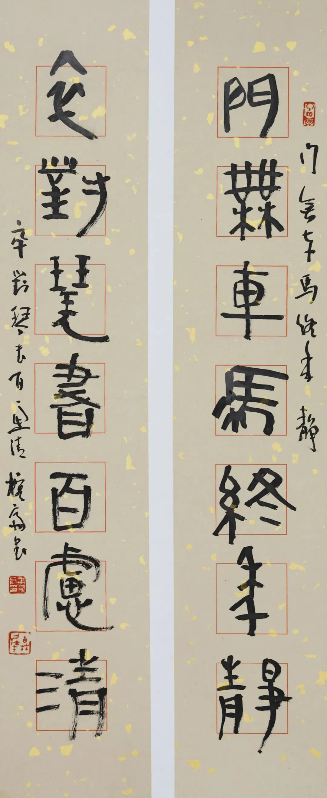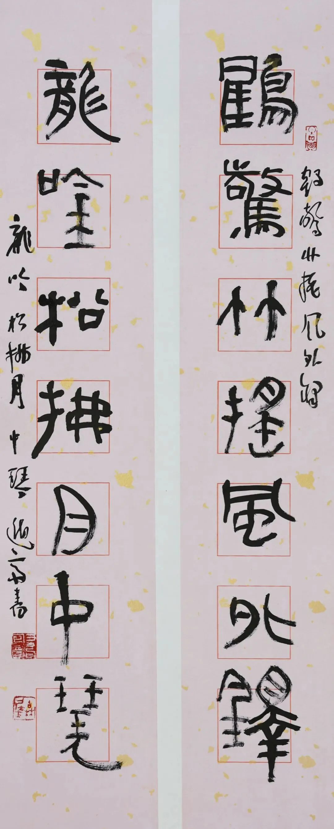 隶书《鹤惊·龙吟》联13cm·69cm·2