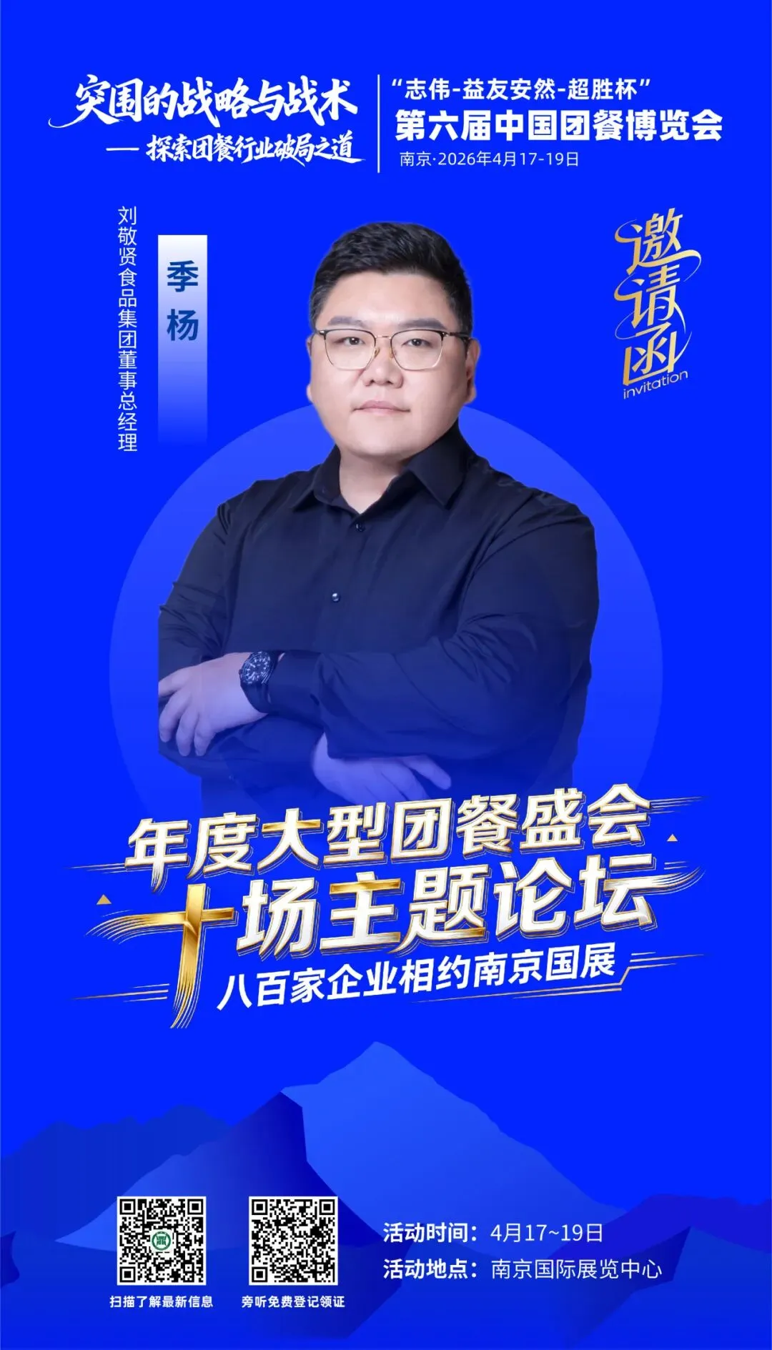 2026年4月17日,南京国际展览中心高朋满座、万商云集——第六届中国团餐博览会在这里隆重拉开帷幕。作为2026东北餐食展重要的系列活动之一,本届团餐展以 “突围的战略与战术—探索团餐行业破局之道” 为主题,汇聚全国团餐产业精英,共探行业高质量发展新路径。由刘敬贤食品集团董事总经理季杨先生协同2026东北餐食展组委会,带领优质企业展商,首次亮相国家级团餐舞台,即赢得满堂喝彩。