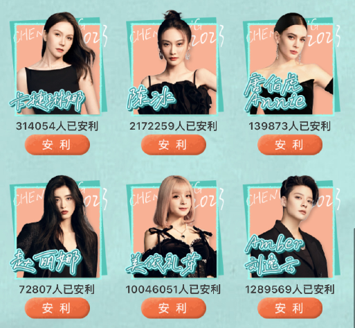 如果从这个播放数据,还不理解她到底有多火,那么再来看看姐姐们的数据对比。(该投票的主要目的是安利过100万,会发布对应姐姐的初舞台直拍)