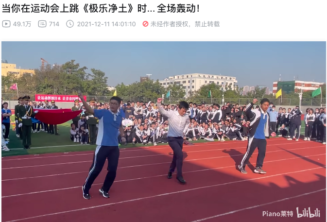 私底下再怎么社恐,也会认真学舞,在全校同学老师面前表演,哪怕知道会有“嘲笑”,但依旧能自信表演: