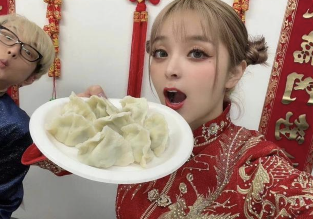 也尝试过中式旗袍,感受中国的春节,和饺子合照,对于中国的喜爱是真的!