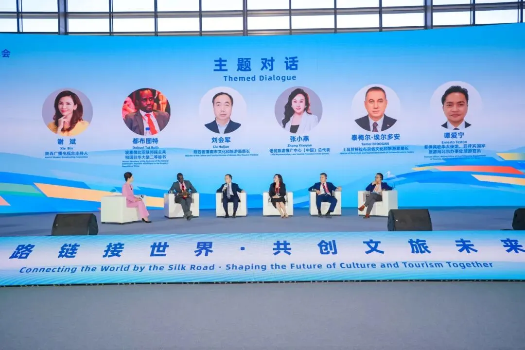 主题对话环节,埃塞俄比亚联邦民主共和国驻华大使二等秘书都布图特、土耳其特拉布宗省文化和旅游局局长泰梅尔·埃尔多安、老挝旅游推广中心(中国)总代表张小燕、陕西省渭南市文化和旅游局局长刘会军、菲律宾驻华大使馆及菲律宾国家旅游局北京办事处旅游官员谭爱宁等5位嘉宾,以“互联互通·共生共享——奔赴丝绸之路的体验新时代”为主题,聚焦丝路旅游资源整合、客源互通、品牌共建、服务提升等关键内容深入交流,共同探索丝路旅游高质量发展新路径。