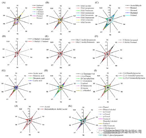 图3 常见风味物质的响应图