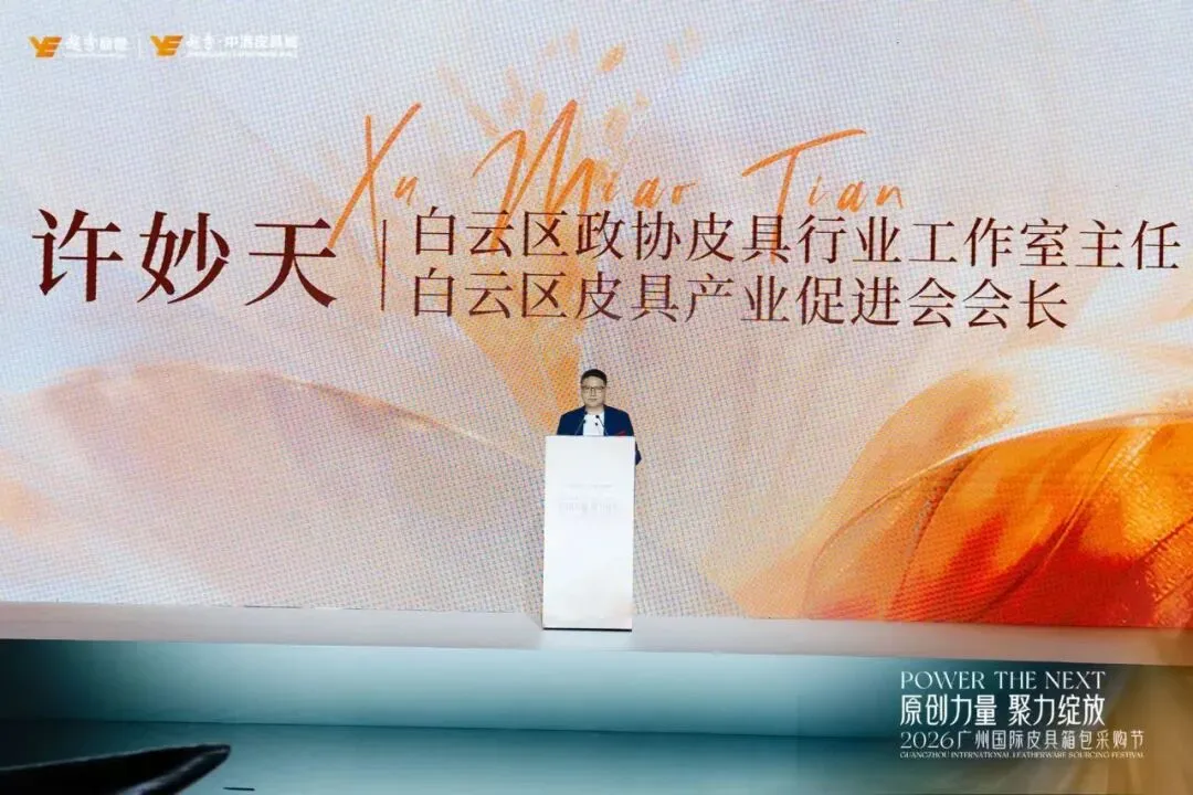 白云区政协皮具行业工作室主任、区皮具产业促进会会长许妙天在致辞中指出,中国皮具箱包产业依然牢牢占据全球供应链“压舱石”位置,白云区三元里皮具商圈集聚了从皮料供应、设计研发到全球贸易的完整生态。中港皮具城以原创设计孵化为核心,荣获“2025年度首发广州·产业引擎奖”,为原创力量提供了生动范本。他表示,促进会新一届班子将秉持“时尚聚力·推动升级·共谋发展”理念,聚力原创设计引领、品牌价值提升、全球贸易拓展,用好市场采购贸易试点、原创设计扶持等政策工具,让白云原创皮具品牌自信走向世界舞台。