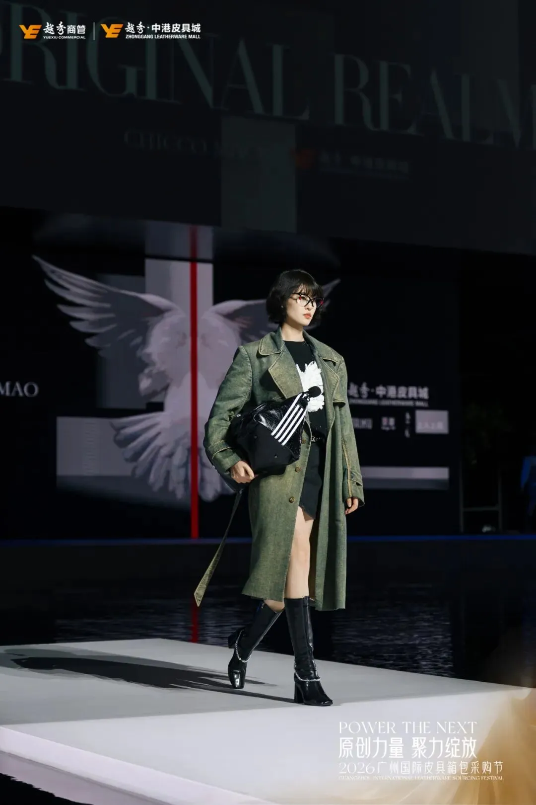 原创设计是产业升级与品牌出海的核心根基。活动现场,中国时装设计最高荣誉“金顶奖”设计师毛宝宝携CHICCOMAO品牌,联合中港五大原创品牌蒽薆、马林苏、秀蔻、上人上品、木兰左带来「潮境·绎新」原创新品大秀,融合东方美学与国际潮流,生动展现广州皮具从“制造”向“创造”的跨越,彰显中国原创国际竞争力,也是中港皮具城原创孵化成果的集中体现。