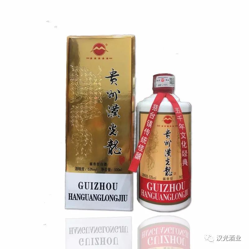 贵州汉光龙酒(酱香型)是以优质糯高粱、小麦、水为原料,采用大曲酱香型白酒传统工艺精心酿造、贮存、勾兑而成,未添加任何香气、香味物质。具有酱香典雅、酒体丰满、醇和协调、回味长、空杯留香久的特点。