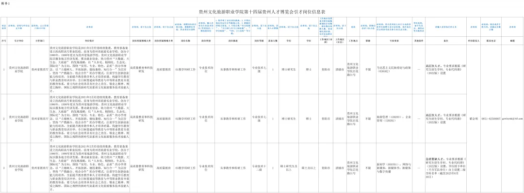附件1:贵州文化旅游职业学院第十四届贵州人才博览会引才岗位信息表.xlsx