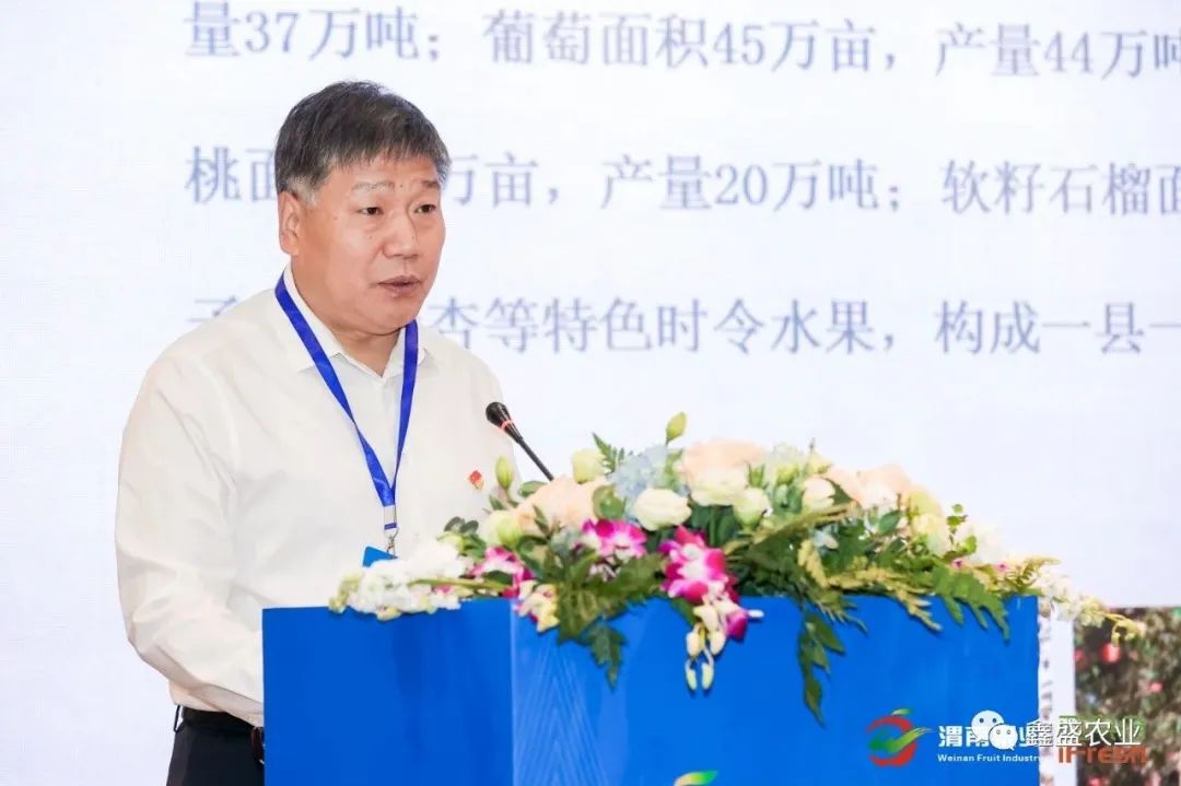 大会上领导分别做了重要讲话,主要宣传推介渭南的名优果品,深化产销对接,推进项目合作,共创发展机遇。我们白水县是国内外专家公认的苹果最佳优生区,因此白水被授予“中国苹果之乡”、白水苹果被授予“中国有机苹果第一县”的称号。
