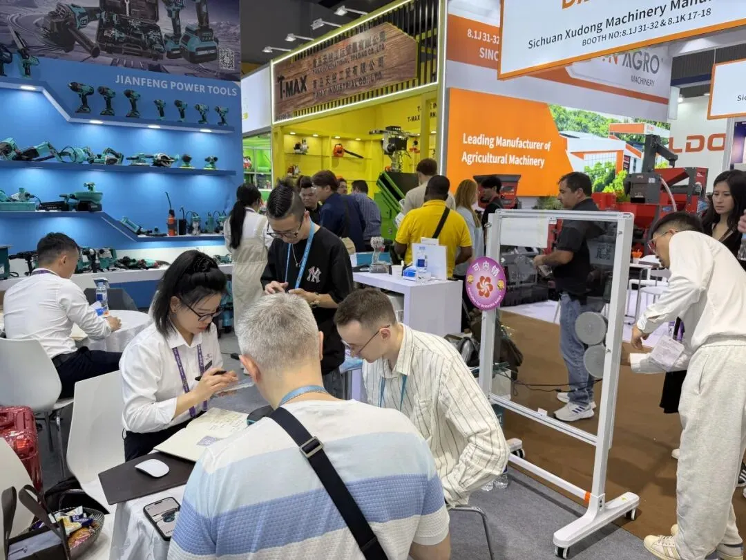 开展首日,便斩获210万美元意向订单的坚锋智造总经理司志洪说:“展会现场,我们不仅展示了锂电钻、角磨机、热风枪等多款畅销主力产品,还重磅推出全新擦窗机器人。该产品凭借新颖的设计与实用功能,迅速成为展馆焦点,吸引众多海外采购商驻足咨询、洽谈合作。”
