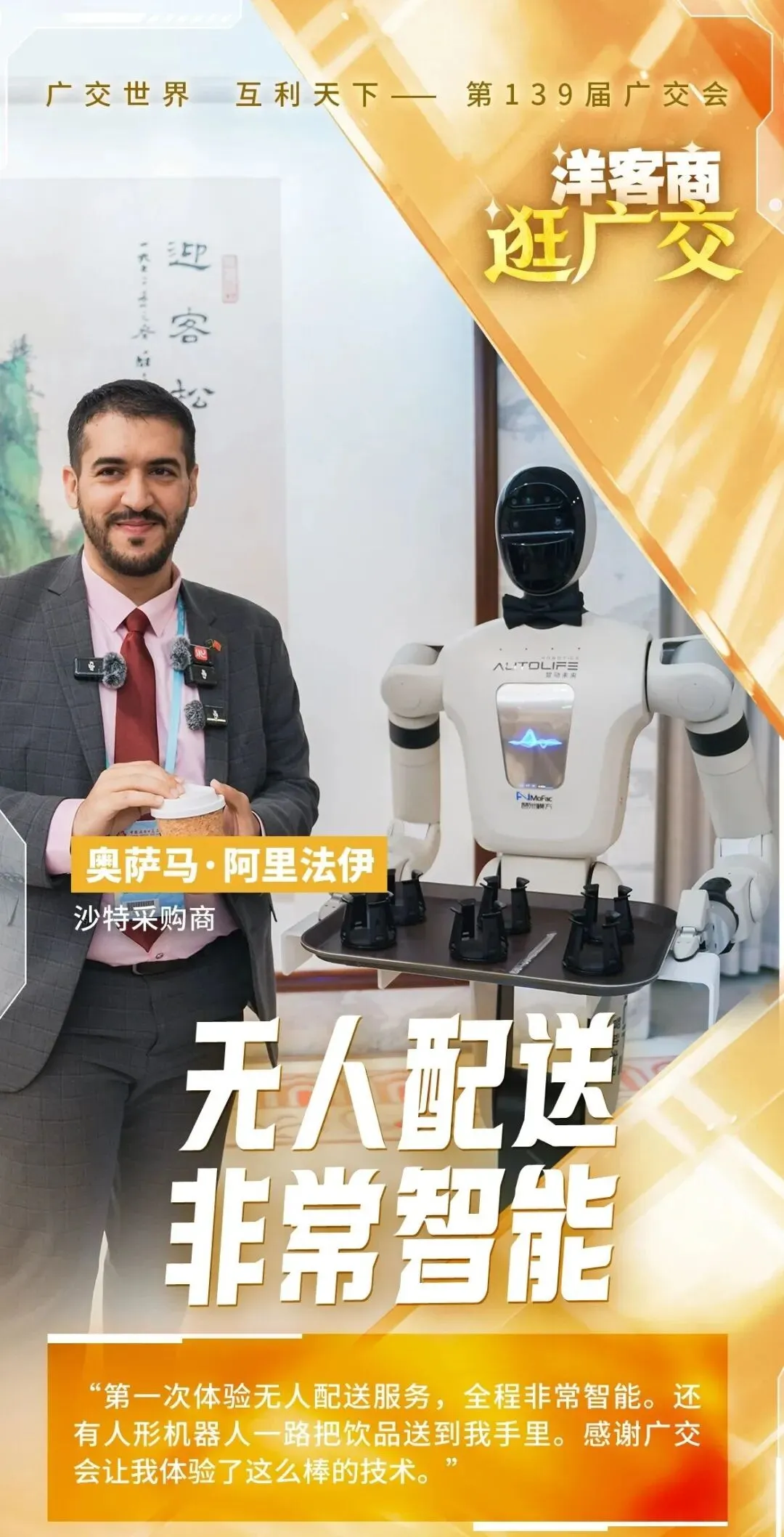 澳大利亚的采购商安东尼·格雷表示,这是他第三次参加广交会。在这里看到的创新,远远超前于当前实际应用的技术。“我今年主要找的是工程类产品,比如焊接机器人。但广交会上什么都有,能满足所有行业的需求,”他说。工业焊接、餐饮服务、物流运输……“中国智造”让“广交世界”变得更精彩。展会上,来自摩洛哥的采购商希姆迪女士正戴着可视翻译眼镜用阿拉伯语与中国展商愉快聊天。她告诉记者,能这样畅通无阻进行双语对话的“秘密”就来自她佩戴的眼镜。