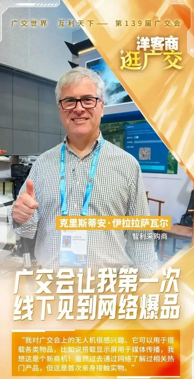 这位中东采购商特意奔赴广交会,核心目的便是寻找优质创新产品带回当地推广。“我们作为商用幕墙清洁机器人领域的头部企业,此次是以商用技术降维进军家用市场,这也是该中东采购商最看重的一点。”叶智鹏回忆,采购商在看到“小飞侠”擦窗机后,当即表现出浓厚兴趣,直言该产品非常适配中东地区的使用需求,且当地此类细分领域产品极为稀缺,迫切希望达成大宗采购合作,将这款产品引入中东市场拓展业务。另一家广州企业晔生航空屡传捷报:首日新签100多架意向订单,订单总额600多万美元。同时,记者在展会现场留意到一个亮眼细节:晔生航空的展台上,除了集中展示自主研发的飞行器产品,洽谈区的桌面上还整齐摆放着红色的签约本,透着火热的签约氛围。晔生航空董事总经理吴傲冰自豪地介绍,16日,新增80架意向订单;展会首日,公司就签下100架意向订单,这两天意向订单总额超过1000万美元。丰硕的签约战果,让吴傲冰在朋友圈笑称:“广交会首日,晔生航空签下多笔意向订单,九宫格都放不下啦。”谈及产品为何备受青睐,吴傲冰总结三大优势:一是技术原创,两款飞行器均为百分百原创设计,技术创新性突出;二是供应链优势,核心供应链布局珠三角,作为广州本土源头工厂,成本与交付效率优势明显;三是价格竞争力强,售价较同类产品有较大优势,高性价比成为吸引全球客商的关键。左右滑动查看