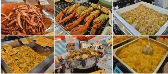 ● 海鲜烧烤、特色小吃、水果鲜吧、包装类食品等