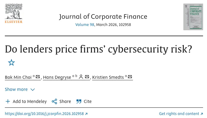 俄亥俄州立大学会计学助理教授、另一项关于网络安全风险与贷款关系研究的作者Amy Sheneman指出,一些借款人可能并未意识到,银行早已将网络安全暴露纳入利率定价体系。