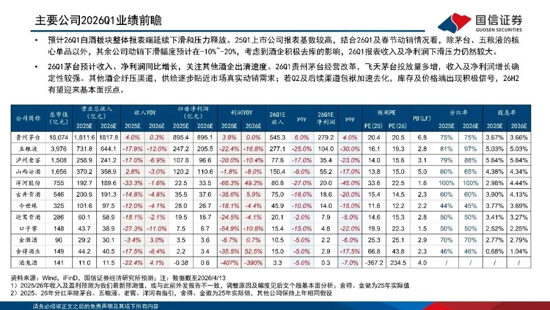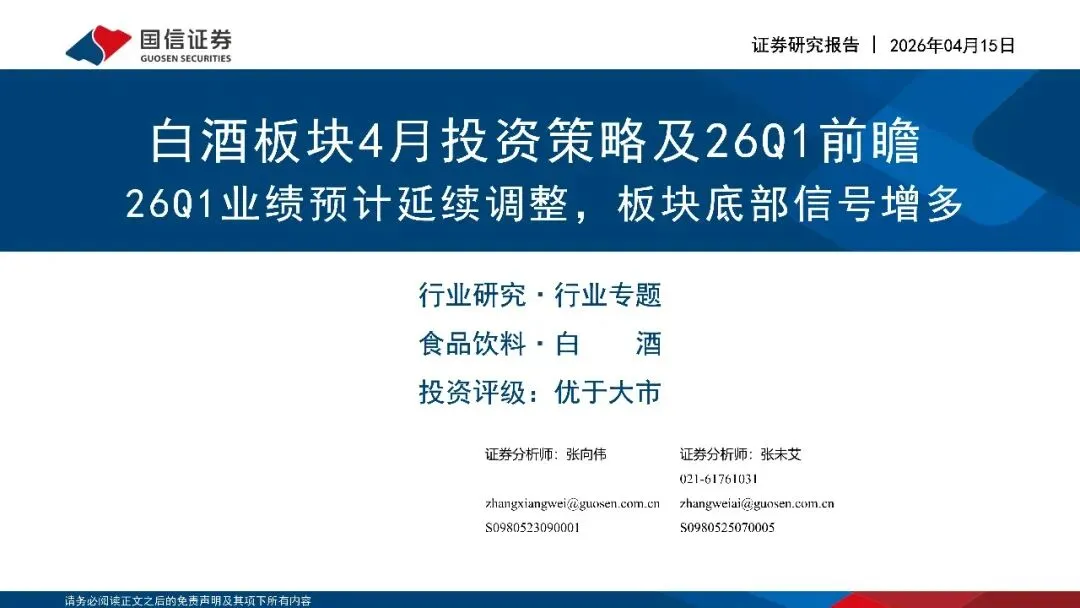 白酒行业板块4月投资策略及26Q1前瞻:26Q1业绩预计延续调整,板块底部信号增多(附下载)