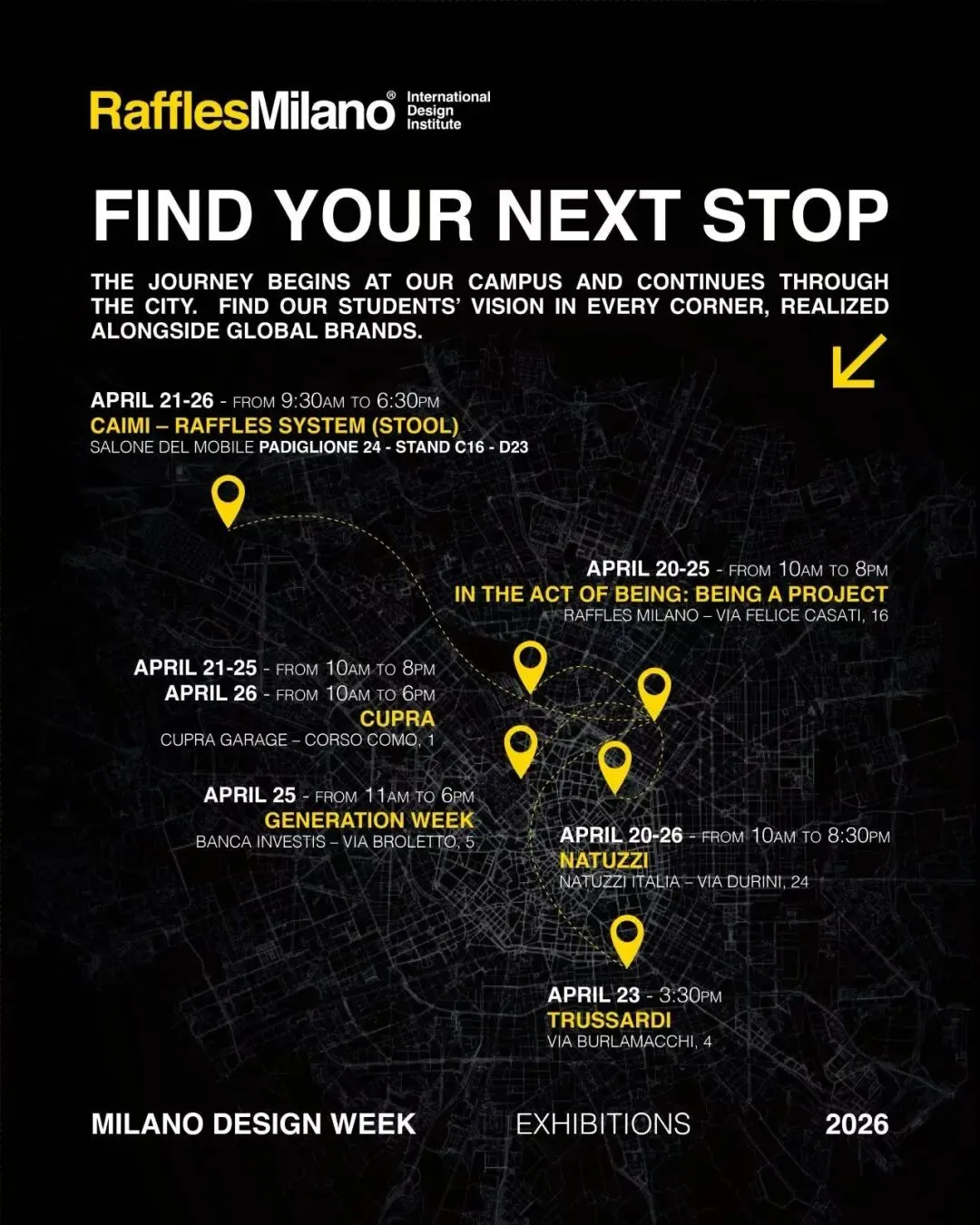 今年米兰莱佛士设计学院再度携手汽车行业的创新品牌Cupra,参与其 “Beyond the Known” 主题展览。合作的72小时设计营”成果,将在布雷拉设计区的Corso Como区域展出。