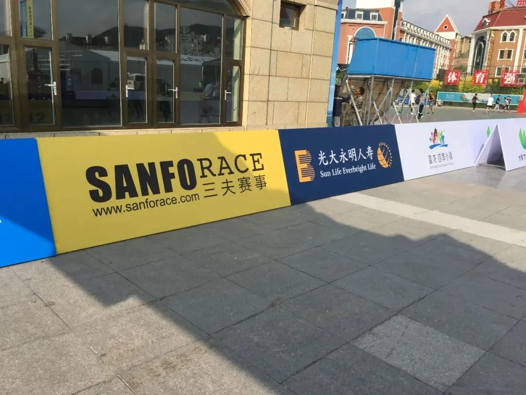 - 公共活动场景:马拉松、试驾会、演唱会等大型赛事 / 活动,承担路线分流、安全警示、品牌露出等作用,防风折叠设计适配户外复杂环境;