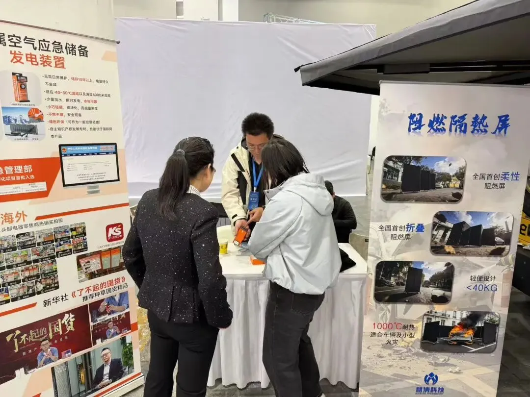 本次展会,慧消科技的新一代阻燃隔离屏成为全场焦点,这款国内首款柔性防火装备,以轻量化设计、高效阻燃隔热性能,为新能源汽车火灾、各类场所火情防控提供了全新解决方案。