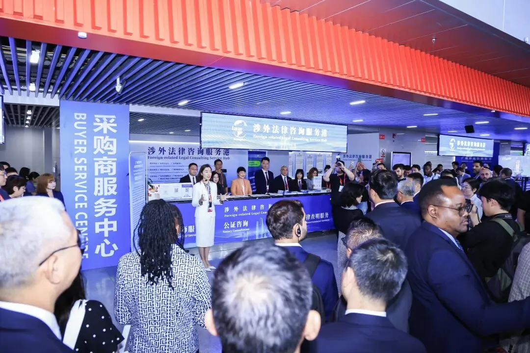 宣介活动结束后,与会嘉宾参观了广交会涉外法律咨询服务港,了解服务港的运行模式、服务范围及特色举措。作为市司法局创新载体,该服务港已连续六届进驻广交会,累计为137个国家和地区的客商提供公益法律咨询3100次,构建起“律师+公证+仲裁+调解+法律查明”全链条服务体系及线上线下协同、24小时响应机制,特别设立粤港澳大湾区律师服务专窗,并通过“直播+短视频”推出多语种法律指南,彰显广州涉外法律服务的专业性与便捷性。