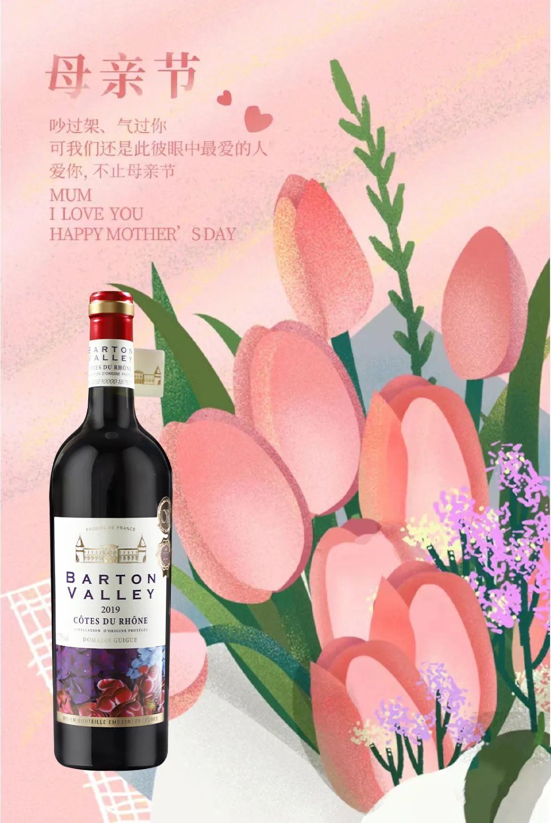 一杯巴顿谷花海干红葡萄酒,送给妈妈!花朵酒标,漂亮还易饮。常喝红酒的3大好处。