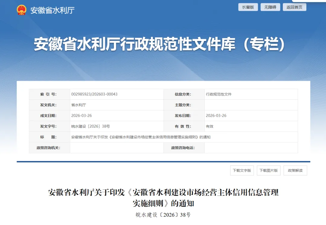 第一条为规范我省水利建设市场经营主体信用信息管理,进一步加强信用体系建设,根据《水利部关于印发<水利建设市场经营主体信用信息管理办法>的通知》(水建设〔2024〕201号)《安徽省人民政府办公厅关于印发〈安徽省健全社会信用体系赋能经济社会高质量发展实施方案〉的通知》(皖政办秘〔2025〕38号)等有关规定,结合我省实际,制定本细则。
