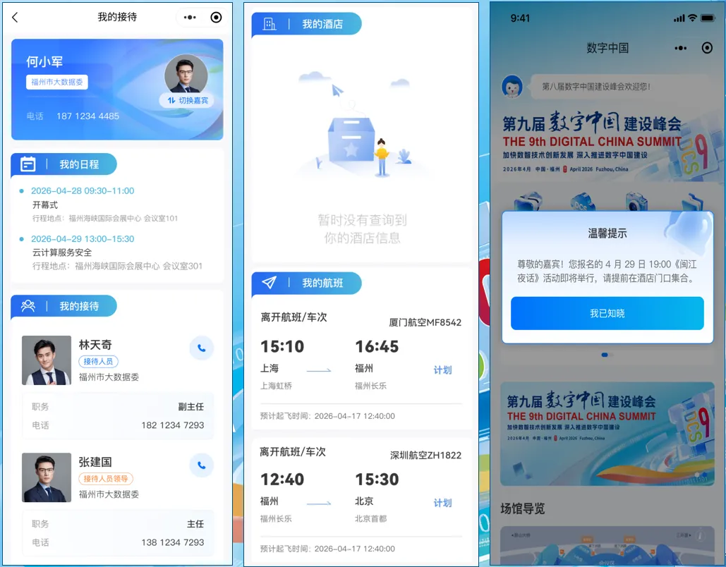 会展集团依托AI大模型技术,实现服务模式从“被动管理”向“主动服务”“主动发现”转变。会前建立多维沟通渠道,精准采集嘉宾参会意向、行程安排、活动需求等信息,动态生成“一人一档”专属服务档案,数据实时同步至峰会小程序,为个性化服务提供数据支撑。