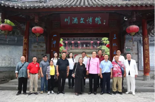 2024年6月,泰国一带一路经贸总会会长颂猜·巴哇啦汶雅(前排右四)一行来崇州市对金盆地集团进行了为期一周的实地考察,对金盆地酒的品质和工艺给予高度评价,对双方在白酒产业领域的合作前景充满信心,并就合作细节达成一致,签订了长期合作协议。