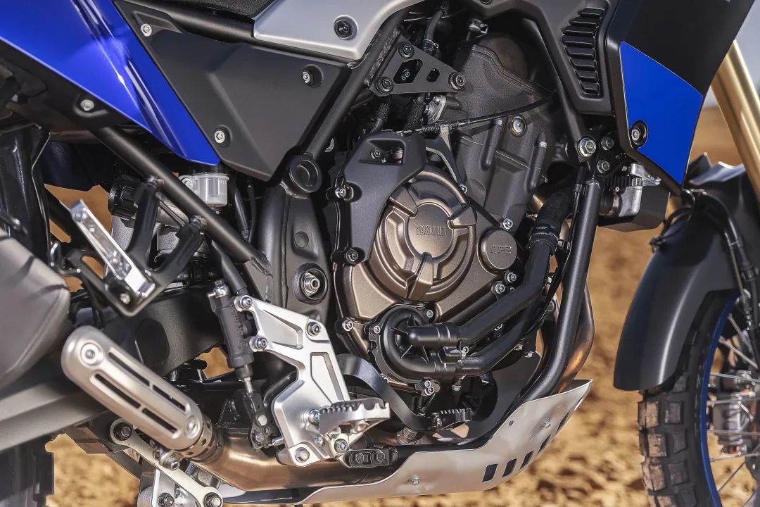 动力采用MT-07的CP2 689cc并列双缸发动机,并为之进行了越野设定,强劲且线性的扭力输出,在Ténéré 700上有着不俗的表现,最大马力为73.4hp/9000rpm、最大扭力68Nm/6500 rpm
