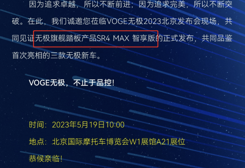 无极VOGE将会上市全新的SR4 MAX智享版,该车型经过1年来的市场验证,也将迎来升级换代了,至于该款车型SR4 MAX智享版究竟如何?我们发布会现场再给大家详细报道。