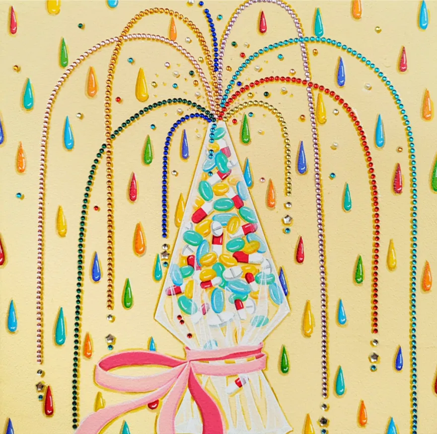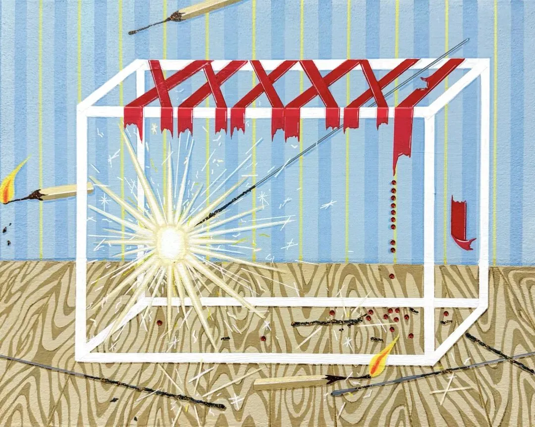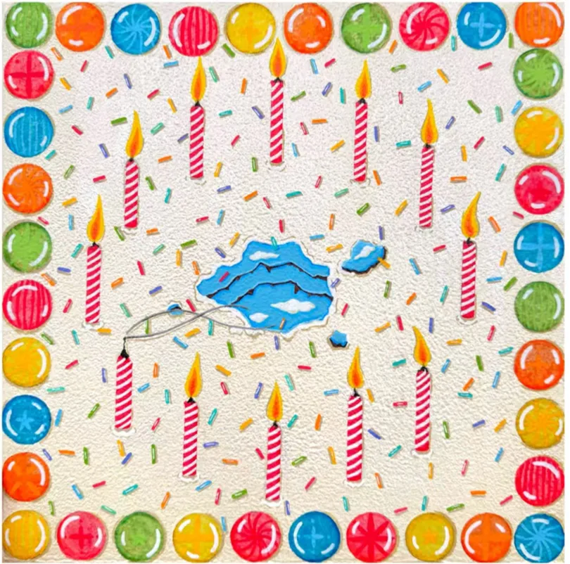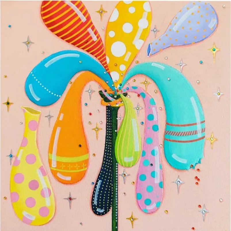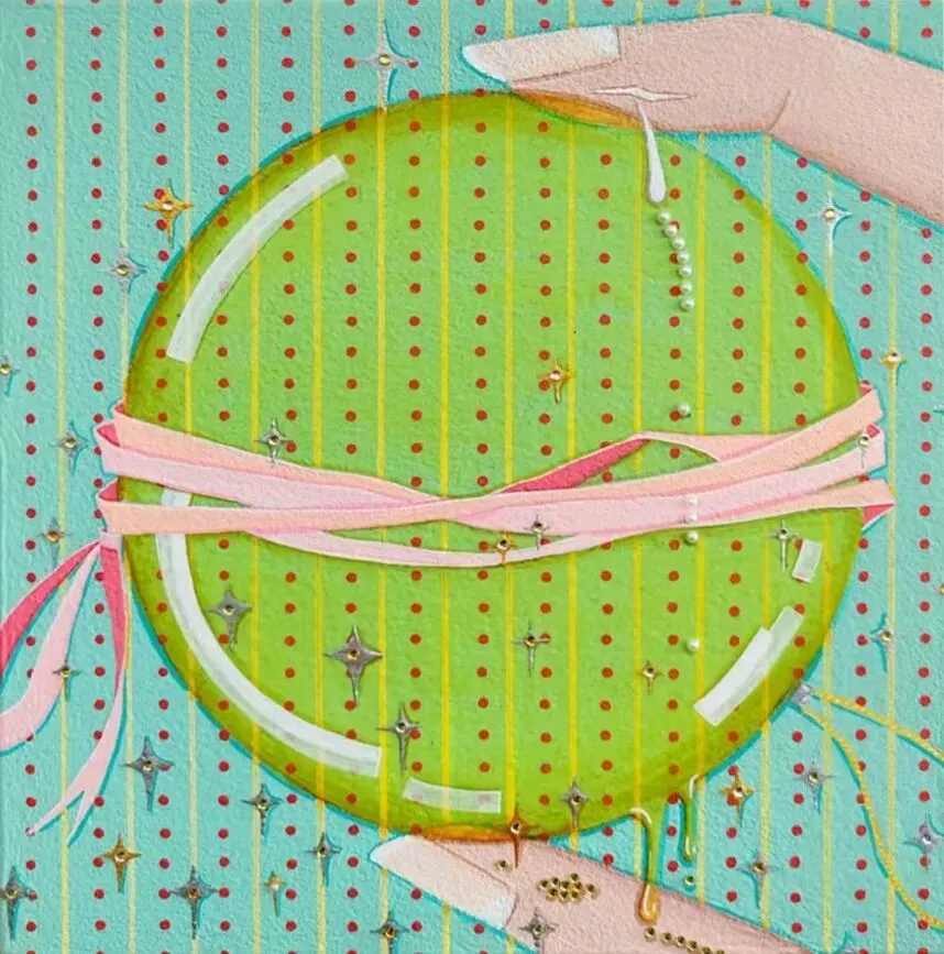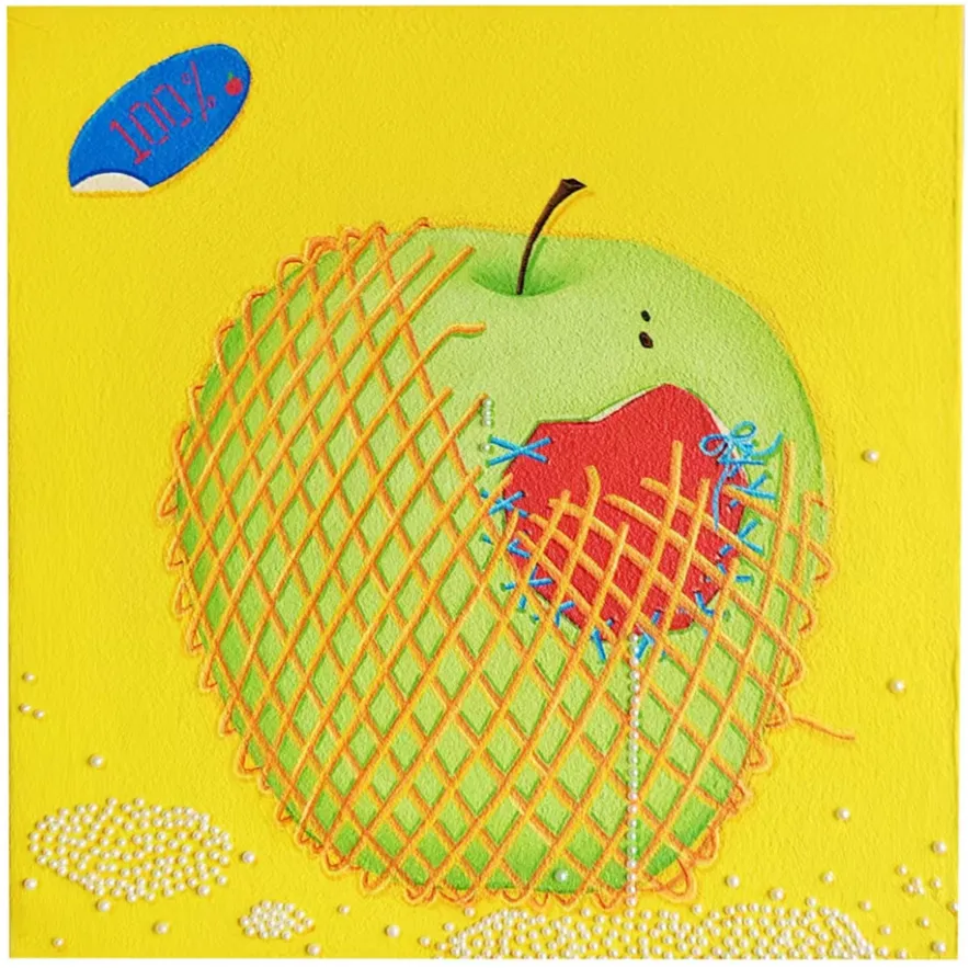 我的目光会不自觉地落在身边那些微小、普通的事物上,裹着网套的苹果,喷洒出来的波子汽水,漏气的气球,记忆里吃过的一颗糖,这些习以为常的生活切片总是能够打动我,上了画布,加入想象,这些日常的物品就会拥有自己的故事,变化为我梦里的样子。