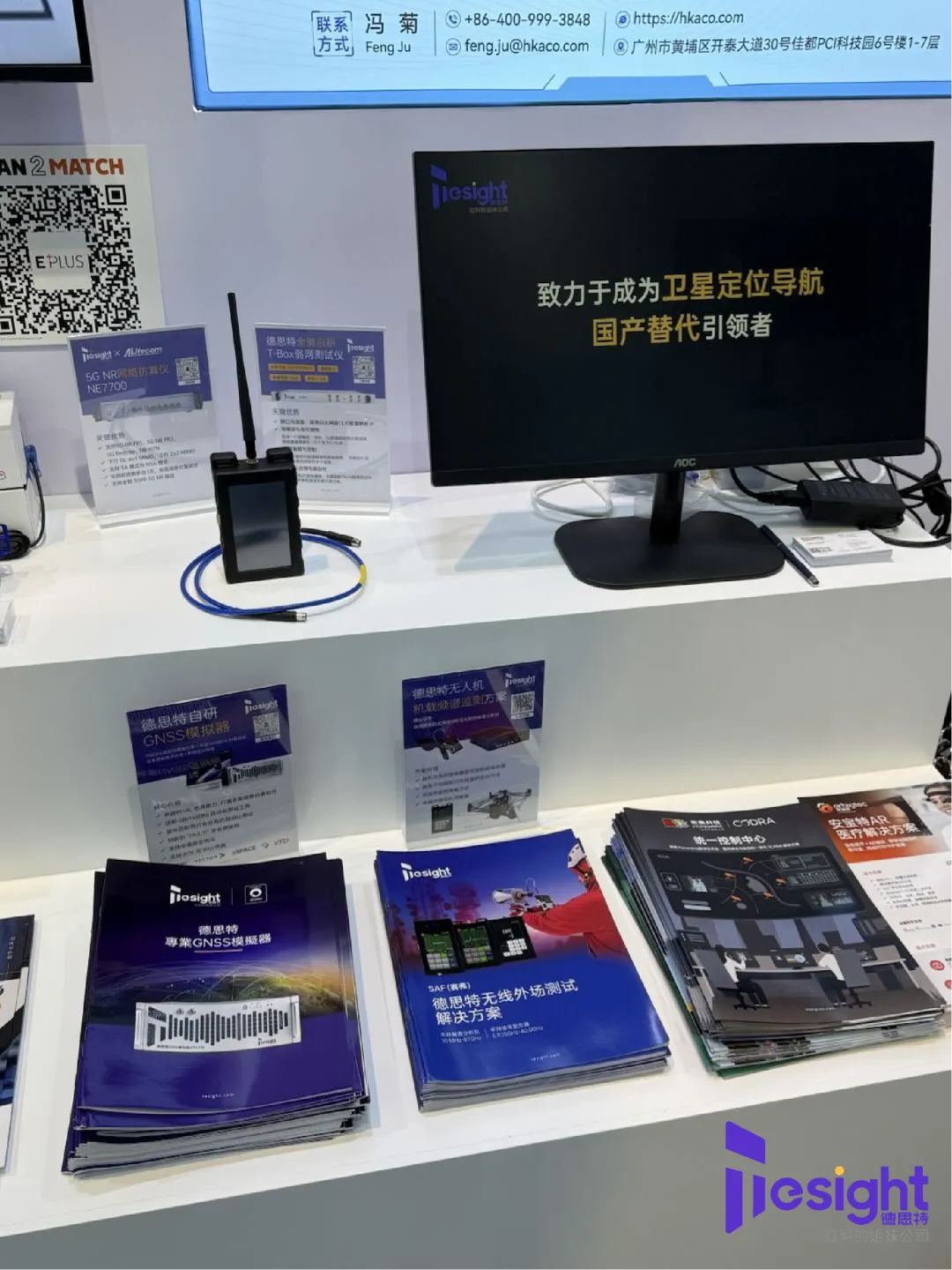 本次展会,德思特GNSS模拟器、5G NR网络仿真仪NE7700、T-box弱网测试仪及无人机机载频谱监测系统四大核心产品悉数亮相。其超低延迟、多通道高并发、高保真复杂场景注入等硬核性能参数吸引了现场大量专业观众驻足交流。